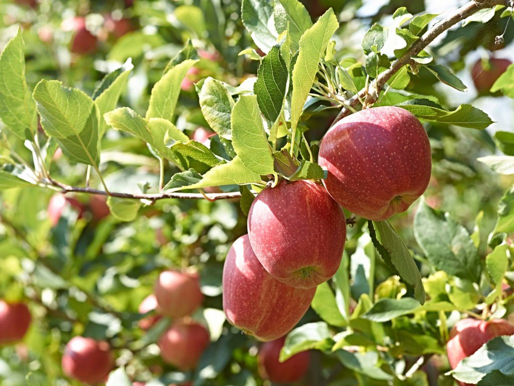 I suoi 400 ettari di superficie produttiva lavorata a mele beneficiando dell’influsso positivo del vicino lago.