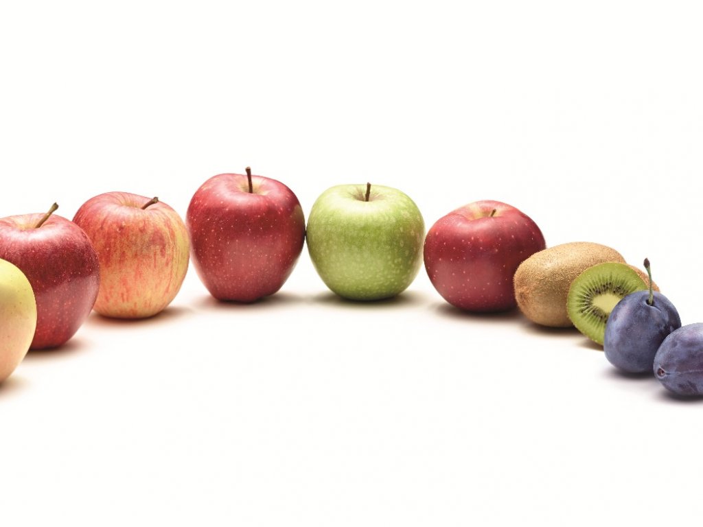 Prodotti de La Trentina - frutta di famiglia, tra cui mele, susine e kiwi.
