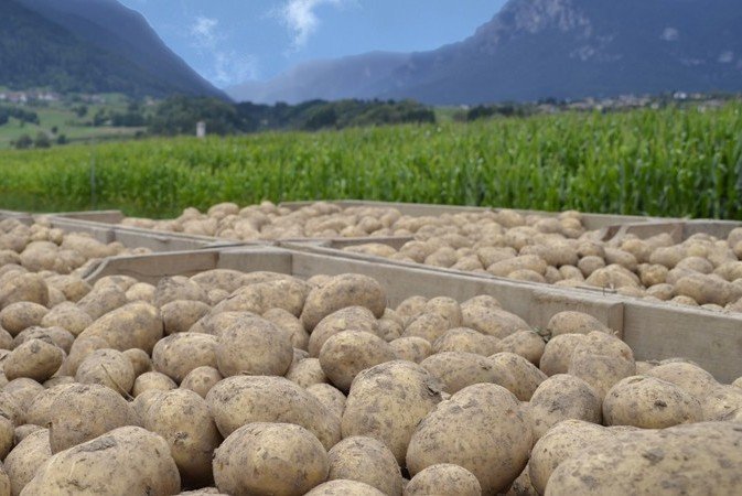Prodotti del Consorzio tra cui mele e patate di montagna e quelli di La Trentina - frutta di famiglia.