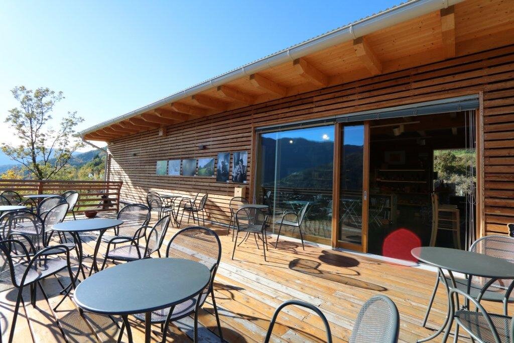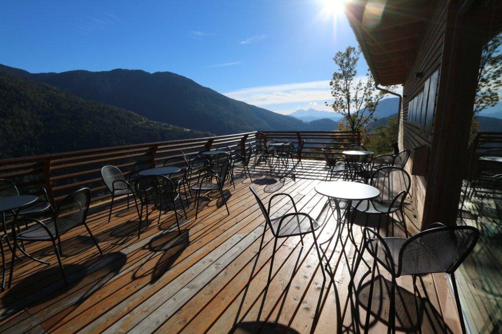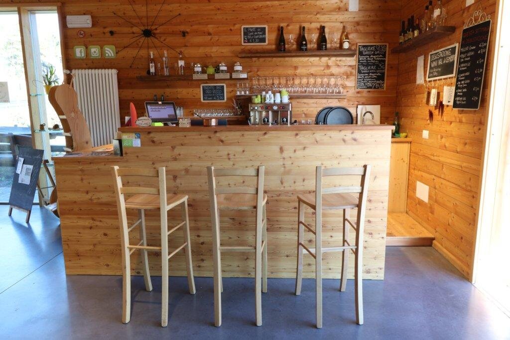 I criteri di sostenibilità e chilometro zero che caratterizzano i prodotti selezionali per i visitatori sono espressi anche dalla struttura stessa del Green Grill: costruita interamente con legno dei boschi di Grumes, tagliato e segato sul posto, riscaldata dalla centrale alimentata a cippato di legno locale e arredata, anche con materiali di recupero, grazie al lavoro di numerosi artigiani e ditte locali.
