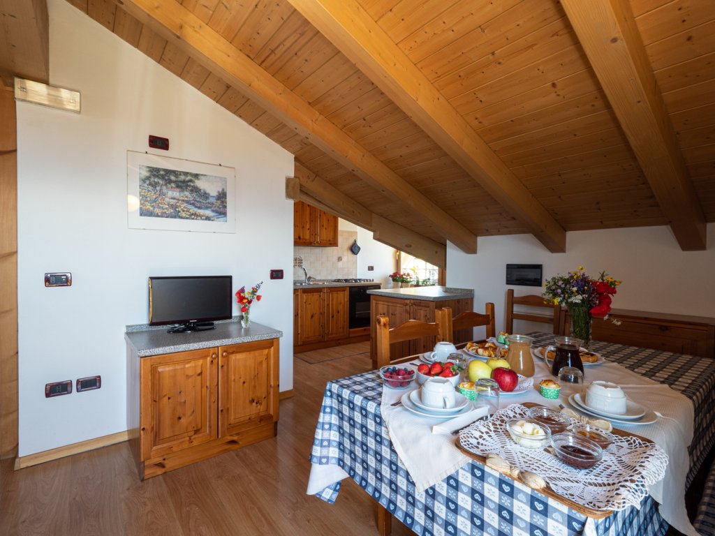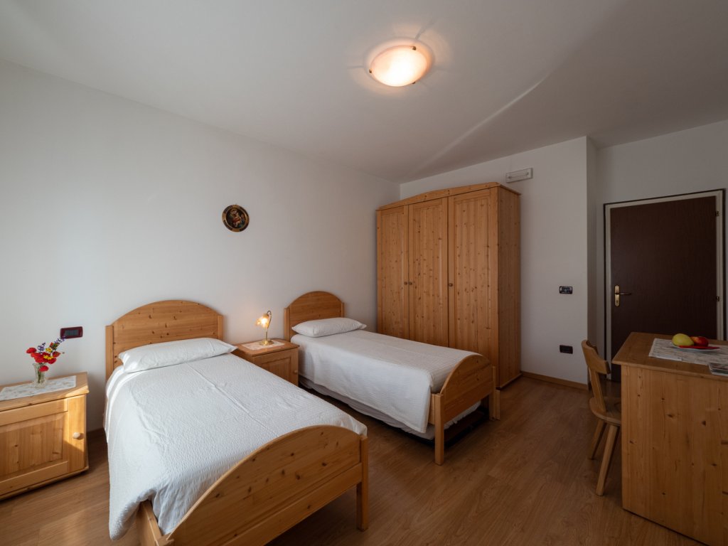 Dispone di 3 stanze, due con balcone, servizi privati, TV, phon, sala per la prima colazione, uso cucina per gruppi; 2 appartamenti da quattro posti letto, uno da otto, tutti con balcone, cucina, TV, lavatrice. Ascensore, parcheggio privato, giardino, barbecue, piccolo parco giochi, antenna terreste e satellitare. Vista incantevole sulla valle, Dolomiti del Brenta e Paganella.