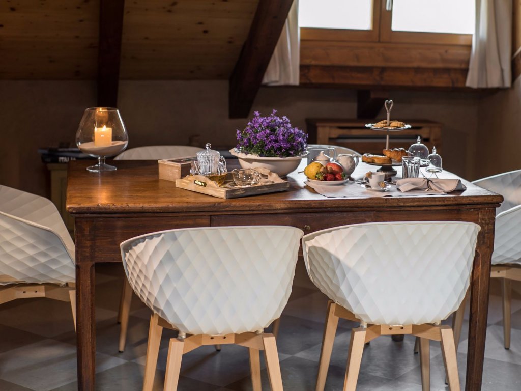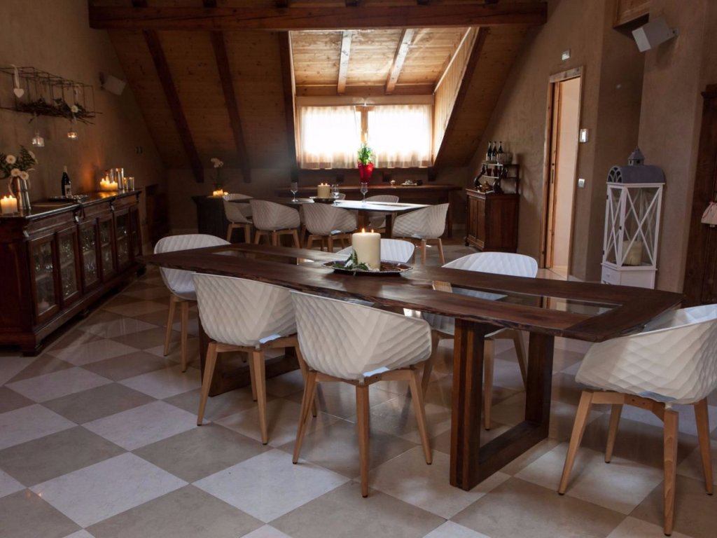 Il Maso è stato ristrutturato rispettando ogni più piccolo particolare che arriva dal passato, per esempio alcuni lavandini sono quelli di pietra ristrutturati, alcune scale sono quelle originali. I materiali usati per la ristrutturazione sono stati scelti il più naturali possibili, i muri sono stati intonacati con argilla, l’isolante è lana di pecora ed alluminio, i tavoli sono dei tronchi di noce tratti con degli olii particolari dove si mangerà direttamente sopra potendo così percepire la morbidezza e la piacevolezza del legno stesso.
