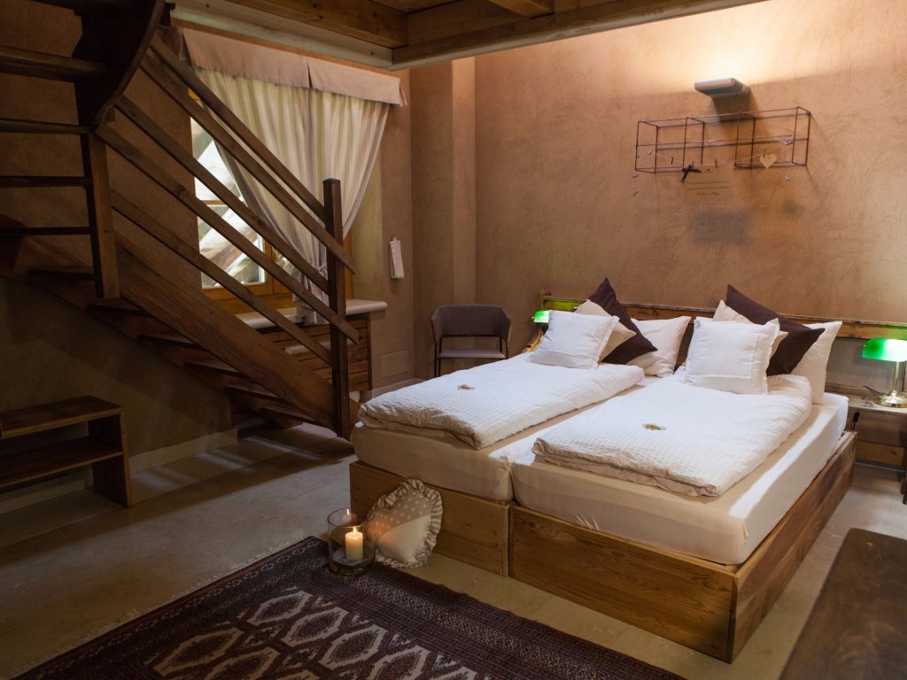 La struttura è dotata di tre camere nella mansarda del maso alta fino a 7 metri circa, dotate di ogni confort, ambiente rilassante, bagno privato, radio, televisione, aria condizionata, arredi di legno naturale con intonaci di argilla.