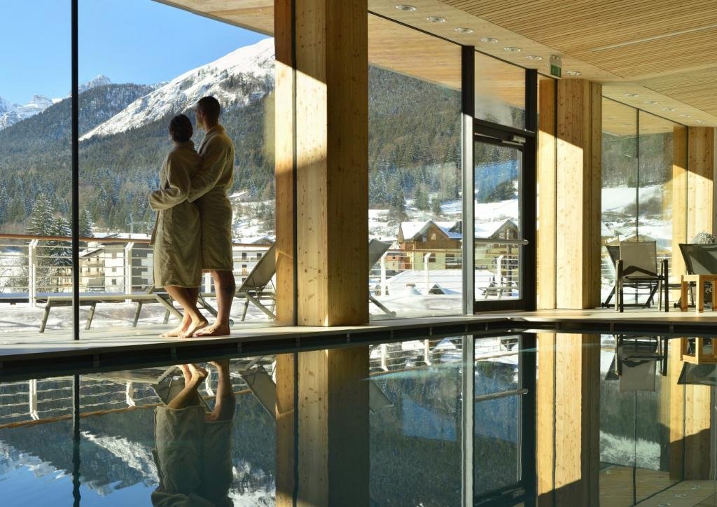 La Spa, dalle cui grandi vetrate, si può ammirare lo spettacolo della natura in tutta la sua bellezza. Un’area di 700 mq da cui affiora una piscina interna ed esterna con idromassaggio, giardino e solarium, una zona umida composta da sauna finlandese, biosauna, bagno turco, fontana di ghiaccio e infine un’area dedicata al relax. E per i più attivi, un’area fitness con attrezzature cardio. A disposizione, inoltre, la zona beauty con cabine per trattamenti e massaggi.