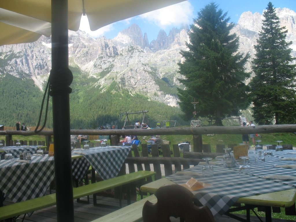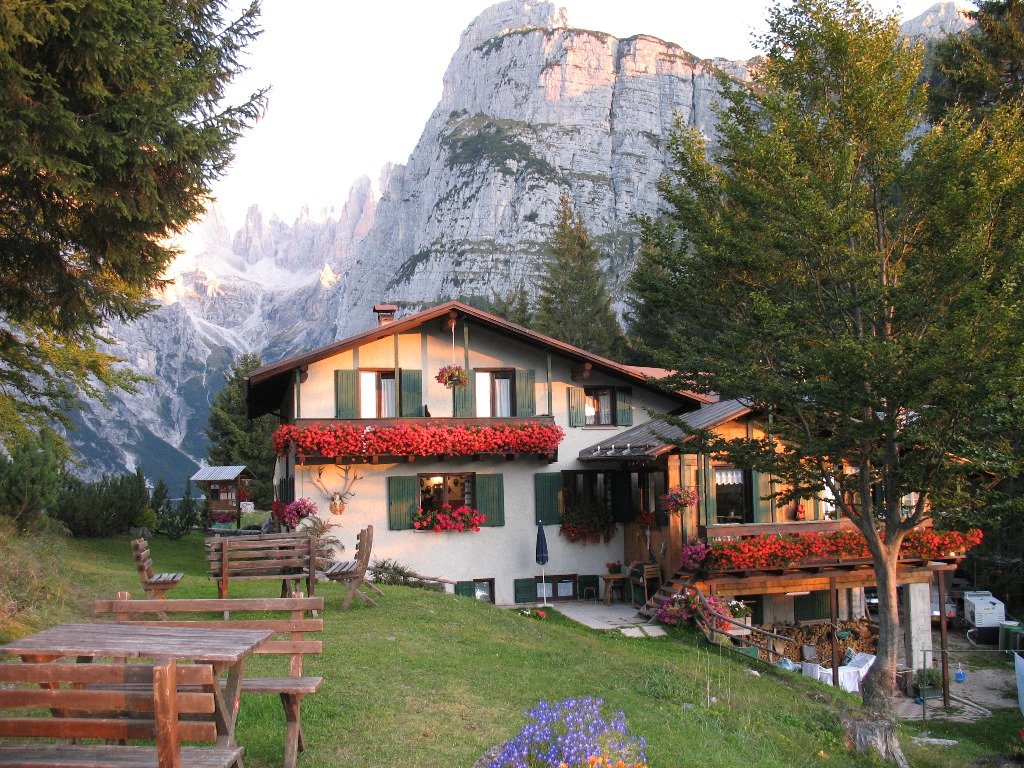 Dal rifugio si gode di una splendida vista sul Parco Naturale delle Adamello Brenta, Patrimonio dell'Unesco.