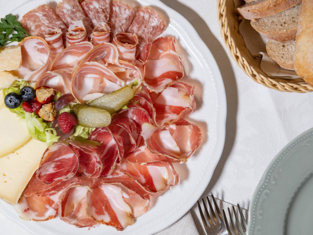 La genuinità dei nostri prodotti è garantita da un allevamento di bestiame seguendo un'alimentazione a base di fieno da noi lavorato nel periodo estivo. Due ingredienti importanti come il sole e qualche goccia di pioggia permettono di raccogliere erba essicata di ottima qualità e necessaria alla produzione di latte e carne. Il primo viene conferito al Caseificio locale mentre la carne servirà ai nostri clienti dell'agriturismo con vini trentini provenienti da altre aziende agricole. Ovini, suini, equini e pollame di vario genere fanno da cornice alla fattoria e forniscono importanti prodotti quali uova e speciali carni bianche e rosse.
