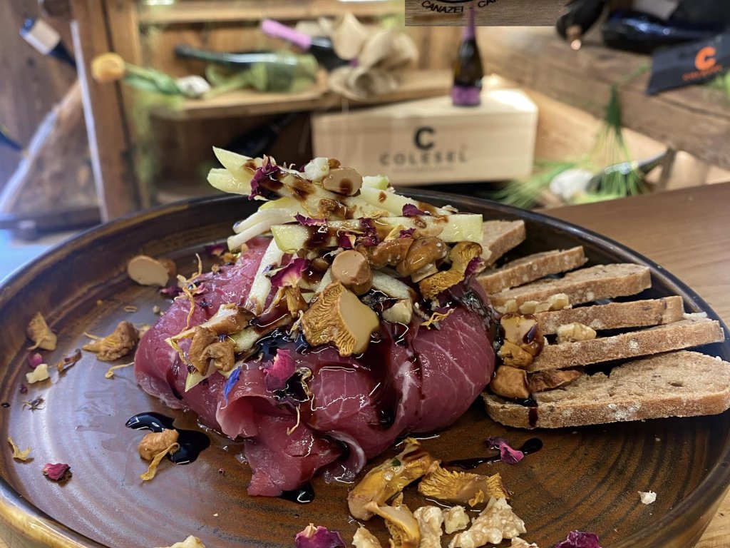 Nella veranda vengono serviti taglieri con salumi e formaggi locali in abbinamento a vini e a birre artigianali del territorio, panini gourmet, pasti a base di piatti della tradizione e gustosi dessert.