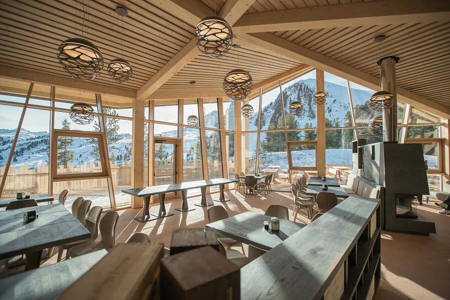 Si noterà subito questo intimo e romantico rifugio dove lo stile architettonico coniuga il moderno al tradizionale e il legno fa da cornice. L’utilizzo del legno e dei colori bianco, per il comignolo, e grigio chiaro per la copertura armonizzano la struttura con i colori delle rocce, della natura e del bosco. La gradevole sala del ristorante spalancherà le sue vetrate direttamente sulle montagne.