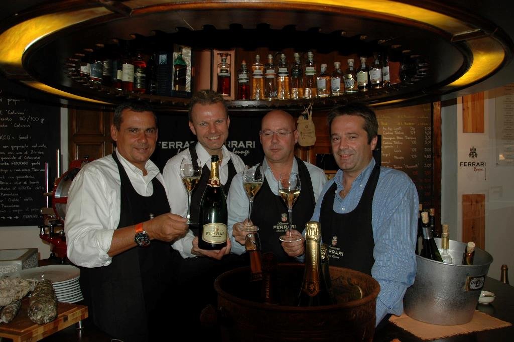 Aperto dieci anni fa si è subito affermato uno tra i luoghi simbolo di Madonna di Campiglio, anche conosciuta come “Perla delle Dolomiti”. Un successo che ha convinto la famiglia Lunelli , titolare delle prestigiose Cantine Ferrari di Trento, a proseguire su questa strada nata da una intuizione di Carlo Filiberto Bleggi: dall’esempio di Campiglio, infatti sono nati in ordine cronologico gli spazi dedicati alle bollicine più amate dagli italiani, il Crudo Ferrari Lounge di Roma, il Ferrari Spazio Bollicine Gran Caffè la Caffettiera di Napoli, ed ultimo, almeno per il momento lo Spazio bollicine Ferrari in Piazzetta a Porto Cervo.