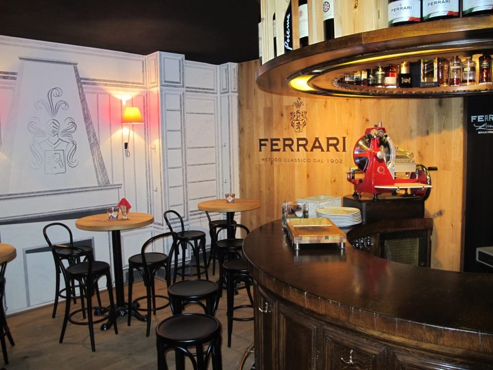 Le bollicine più amate dagli italiani sono protagoniste in questi “ Spazi Bollicine” ambienti votati alla raffinatezza, e si propongono nei luoghi simbolo del turismo d’élite o d’affari. Tutte le etichette dello spumante Ferrari sono sempre presenti e proposte in degustazione servite direttamente ed esclusivamente nelle preziose Magnum da un litro e mezzo.