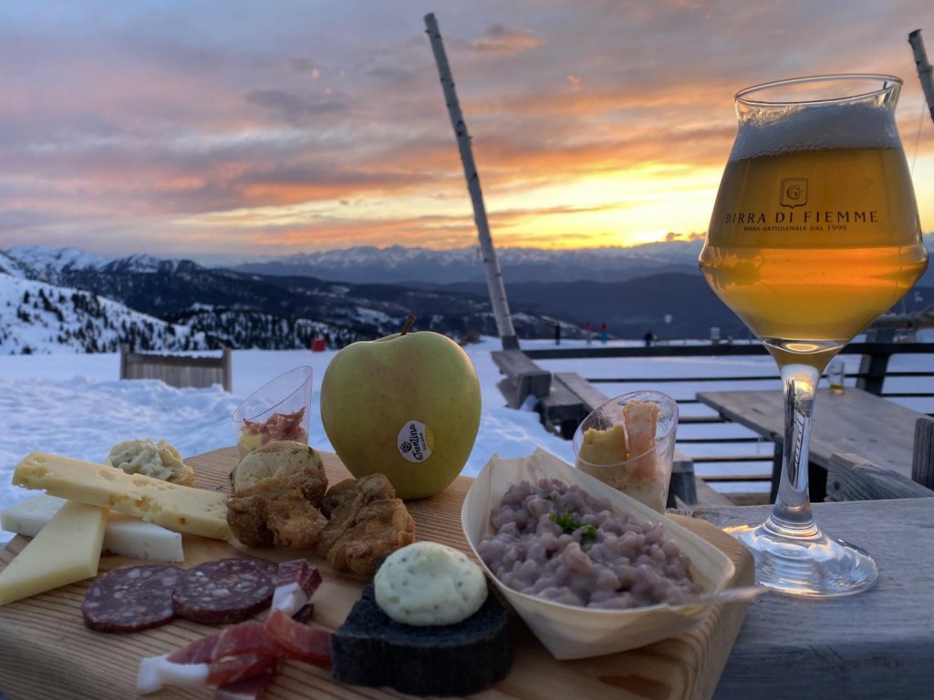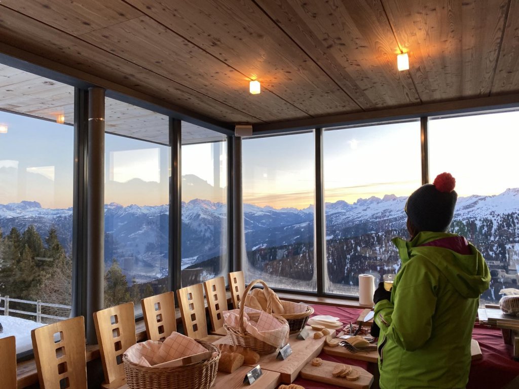 Una terrazza da far girare la testa a 2300 mt di quota ! Si perchè qui troverete una vista spettacolare a 360° sulla Val di Fiemme e sulle Dolomiti, dalle Pale di San Martino alla Marmolada fino a Cevedale e gruppo del Brenta, ma non solo.