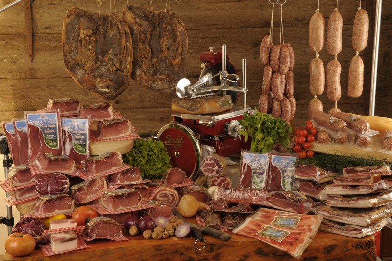 Brenta Salumi is located in Spiazzo, on the road to Pinzolo, just minutes from Madonna di Campiglio, in the heart of Adamello Brenta. For years, the family managing it has been committed to this activity with passion and love, reproposing its grandparents’ secret ingredients. Here, you can buy the typical products of Trentino and Val Rendena, to continue your journey of taste at home or make a really tasty gift to relatives or friends. Selected meats, passion for processing, ancient recipes and aging rules guarantee flavours and fragrances of the past.
