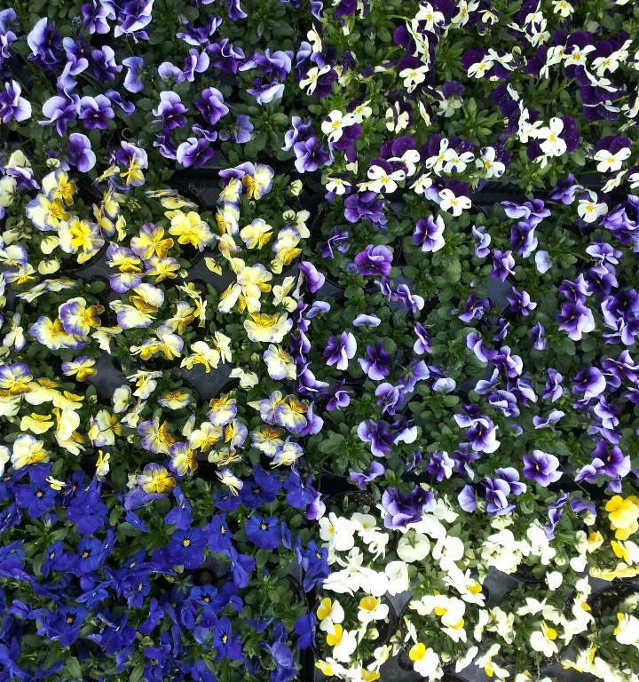 primule, viole, mysotis, geranei, surfine, ciclamini, stella di Natale, piante da orto