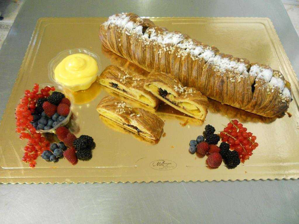 Dolci, tra cui paste fresche, paste mignon, torte per ogni ricorrenza, pralineria assortita e tavolette di cioccolato anche con vino e grappe locali, biscotti, dolci tipici regionali come la treccia mochena, lo zelten, il panettone al vino merlino, le colombe artigianali
