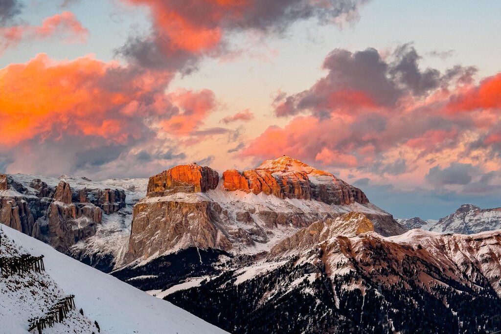 - ore 17:30 - prima di entrare al caldo del Rifugio Crepa Neigra osservi il fenomeno dell’Enrosadira che, al tramonto, colora le montagne delle sfumature del rosa e del rosso e il cielo di meravigliose sfumature