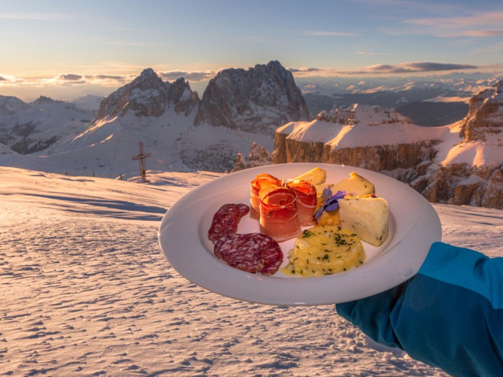 Salire sul tetto delle Dolomiti, ai 2950 mt di quota del Sass Pordoi, per godere non solo di un panorama che vi lascerà senza fiato, ma anche di uno gustosissimo apericena farm to table, dal produttore alla tavola, con protagonisti i formaggi della Mèlga de Fascia, i salumi e le carni Felicetti Speck, i particolari profumi e sentori di N'Outa e le gustose mele La Trentina abbinati ai vini trentini Cavit e alle bollicine di montagna Altemasi Trentodoc, con il racconto live dei produttori. A combinare il tutto ci penserà il Rifugio Maria con una proposta d’autore 100% made in Val di Fassa, disponibile anche nella versione for kids, pronta a saziarvi e appagare i vostri palati, ma anche a lasciarvi un simpatico ricordo homemade by Utòl da portare nelle vostre case.