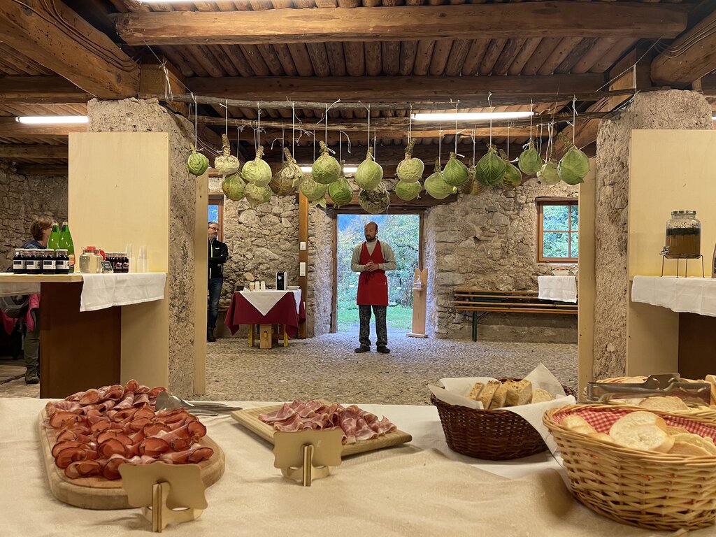 07:45 - 08:45 Driiiinn!⏰ Dopo un risveglio accompagnato dai canti degli uccelli, raggiungiamo l’antica stalla, questa volta imbandita per gustare una ricca colazione a base di prodotti caserecci, preparata con cura da Agritur Dalaip Dei Pape🍞🫐