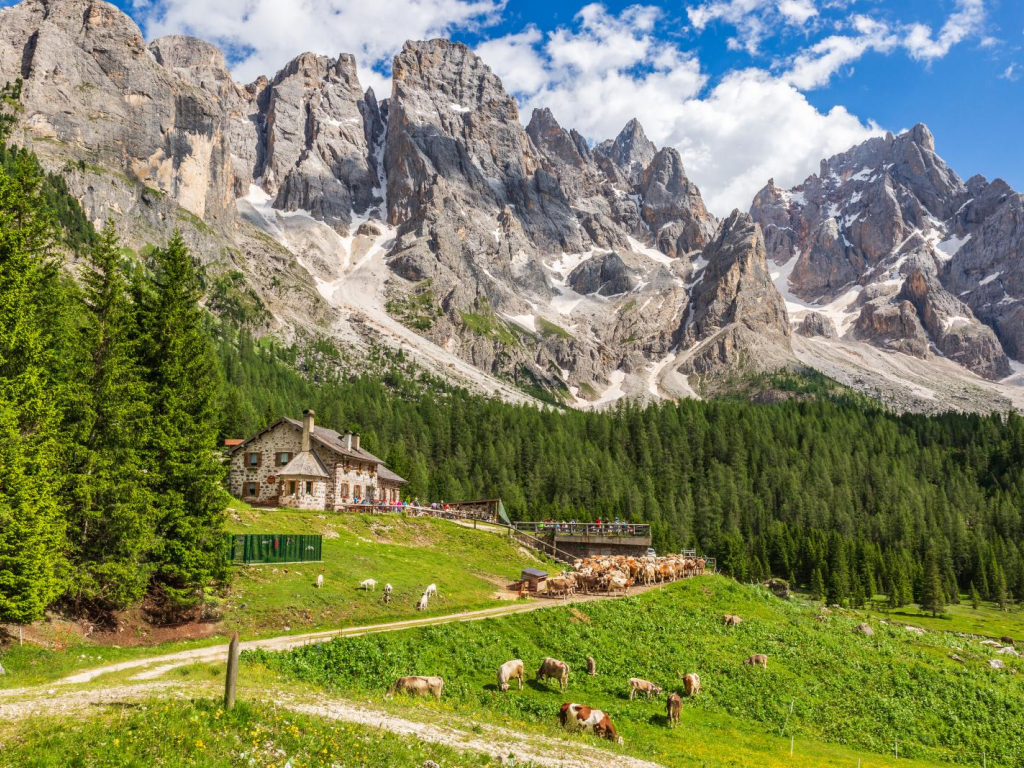 Tra la Val Venegia e il Passo Rolle, nel cuore della Foresta dei Violini tra vette mozzafiato e passaggi incantevoli del Parco naturale Paneveggio Pale di San Martino, si snoda questo itinerario circolare che, di malga in malga, vi conduce alla scoperta dei prodotti caseari e dei segreti che stanno alla base della loro qualità.