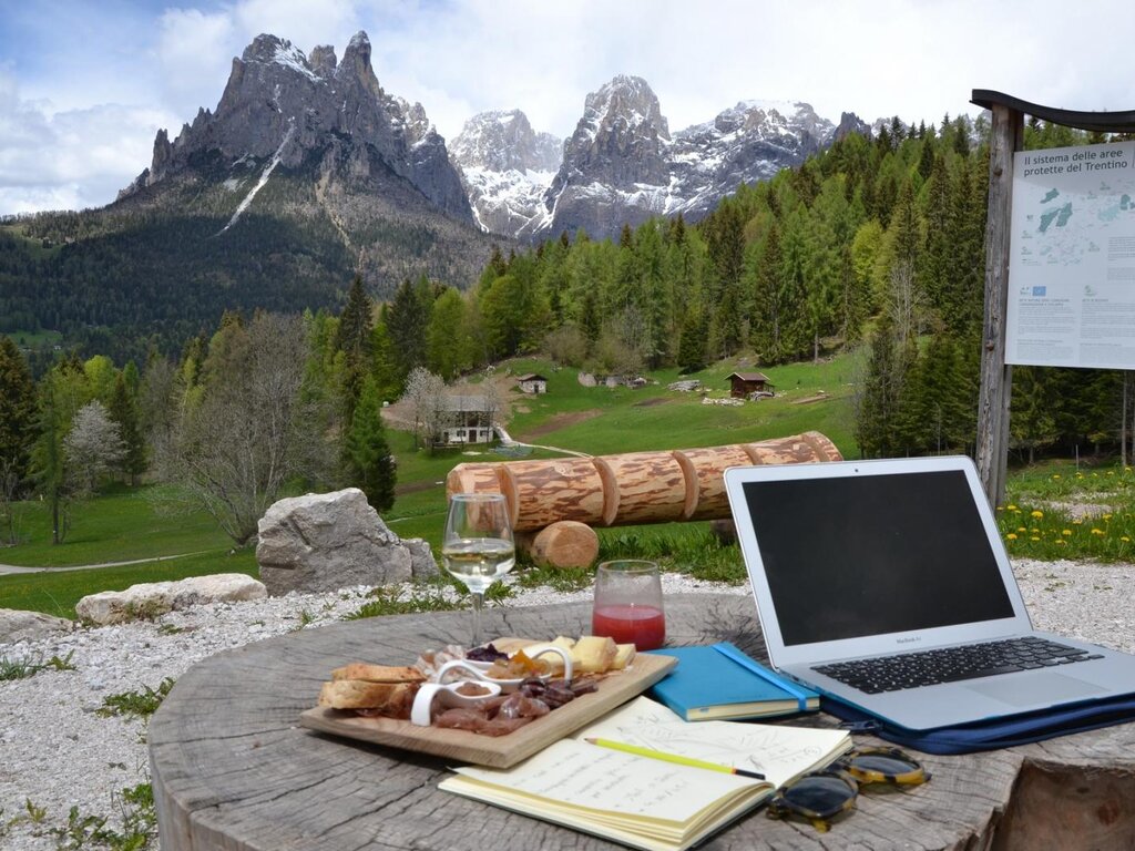 Scopri tutte le strutture smart workers friendly, i servizi dedicati e le esperienze food&wine studiate per chi vuole coniugare vacanza e lavoro, scegliendo il nostro splendido Trentino e una delle sue scrivanie con vista lungo le Strade del Vino e dei Sapori. "Lunedì, ore 6.45: suona la sveglia puntuale, come tutti i giorni lavorativi. Nel dormiveglia sento un profumo di torta di mele e immagino di sognare. Poi apro gli occhi e …puff: eccomi nella mia nuova camera che odora di legno di larice, avvolta nel caldo piumino, dove trascorrerò le mie prossime due settimane in smart working. L’istinto irrefrenabile mi guida, apro le tende e la finestra del mio balcone: davanti a me la vista sulle Dolomiti del Trentino, il verde dei prati, in lontananza le colline da cui nascono le squisite mele e gli ottimi vini, gli stessi che degusterò a colazione e a pranzo. Come sound i campanacci delle mucche che pascolano nei prati in fiore, accanto a quello che per i prossimi giorni ho scelto come ufficio itinerante. Preparo la mia scrivania con vista in balcone, il wi-fi funziona che è una meraviglia. Alle 9.00 inizio una call, ma prima ho il tempo per un risveglio con tanto di forest bathing, un bagno nel bosco per rigenerare mente e corpo grazie al contatto con gli alberi. La colazione oggi arriva in camera con un fiorellino giallo e un’erba profumatissima che la signora Maria mi descrive come timo selvatico. A fianco al mio pc mi ritrovo un vassoio in legno pieno di cose buone: latte fresco, marmellate homemade, pane artigianale, succo di frutti di bosco, uova, formaggi e speck… nulla a che vedere con il solito caffè e biscotti! Finita la call, mi dedico un paio di ore al progetto che devo consegnare per sabato e chiedo alla reception di stamparmi i bozzetti che mi hanno inviato dall’ufficio: baciata dai raggi di sole e dalla fresca brezza di montagna l’ispirazione è a mille! La pausa pranzo è in giardino con un picnic a bordo piscina…ben venga anche un po’ di tintarella! Il pomeriggio al pc scivola via e, in un batter d’occhio, arrivano le 17.00. Mi preparo per la visita in cantina che ho prenotato, mentre stasera mi attende la cena in baita. La giornata finisce dove era iniziata, nel mio comodissimo letto per un wellness sleeping che si sta rivelando un toccasana per la mia creatività. Domani di nuovo sveglia alle 6.45… non vedo l’ora!"(Lucia, 35 anni – interior designer)