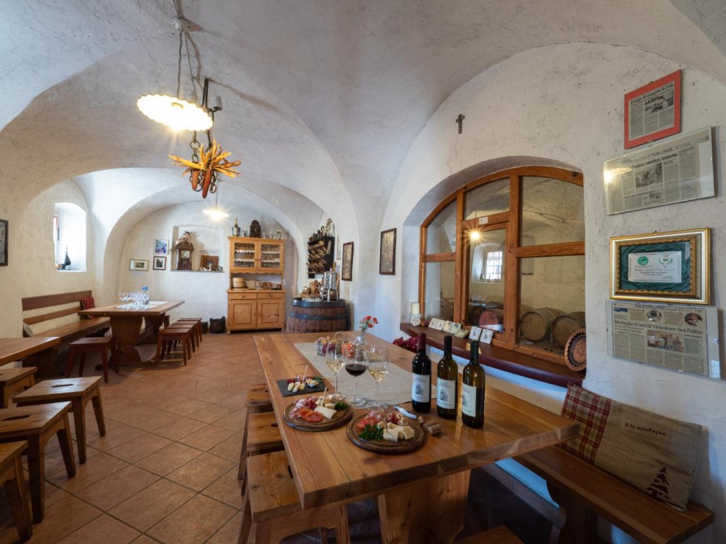 Recentemente è stata ristrutturata anche la cantina, funzionante come cantina privata già ai tempi dell'impero Austro-Ungarico, come testimoniano le vasche vetrificate ancora oggi presenti nei locali a pian terreno.