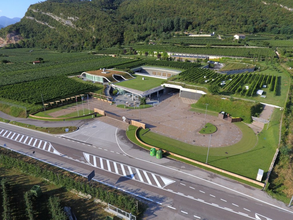 La nuova sede ipogea della Cantina Mori Colli Zugna, nata nel 2011, racchiude esperienza e sostenibilità grazie a un sistema che consente la tracciabilità dei vini fino al vigneto di riferimento, un impianto geotermico, uno fotovoltaico, un utilizzo razionale dell’acqua con riduzione dei consumi del 70% e la realizzazione di un ciclo produttivo “per caduta”, a vantaggio dell’integrità della materia prima. Più che accorgimenti forme di tecnologia intelligente per un vivere sostenibile che preservi e valorizzi il sistema ambientale. La natura si fa architettura ed abbraccia con i vigneti l’intera struttura che cela il fermento enologico.
