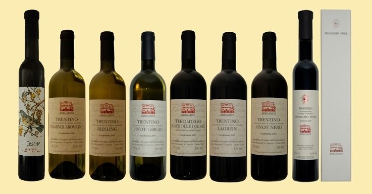 vini rossi: Pinot Nero, Lagrein, Teroldego, Maderno