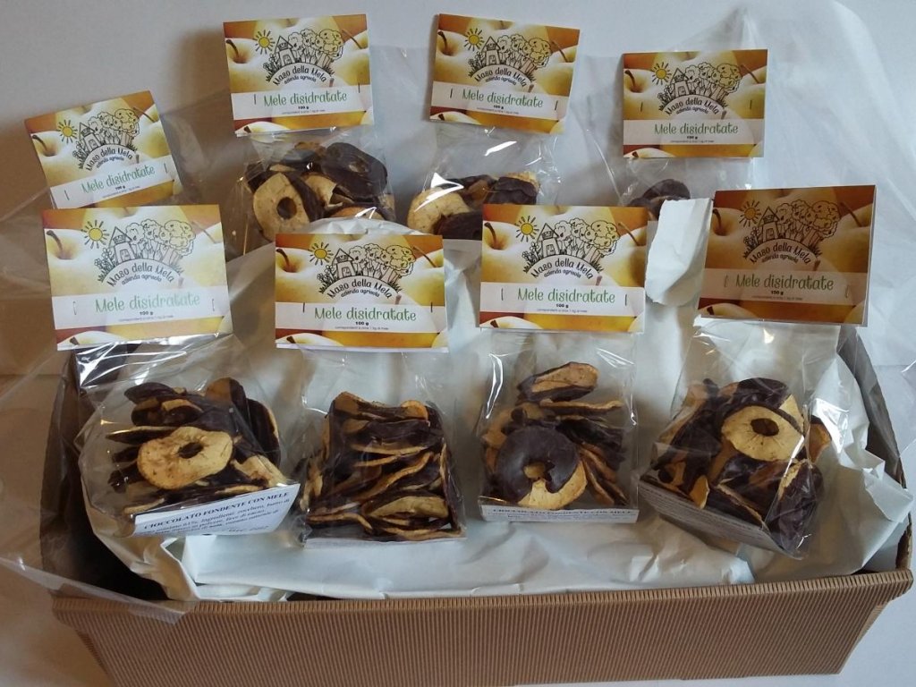 Inoltre le mele vengono raccolte a mano nei mesi di settembre ed ottobre, nel momento in cui si hanno le migliori caratteristiche del prodotto e vengono immediatamente lavorate.