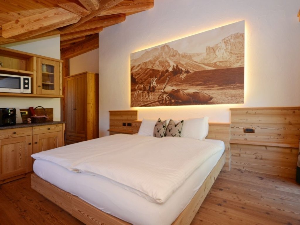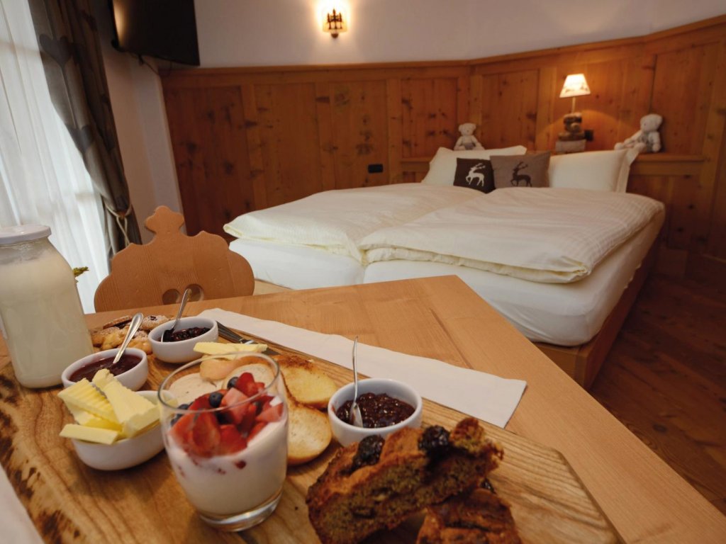 Pernotterete per due notti nella nostra suite del Maso, dal profumo di legno, con ampi spazi per il vostro living e con il comfort di una colazione in camera con latte fresco, dolci homemade, salumi, formaggi e uova del maso. Il tutto con splendida vista sull’abitato di Moena.