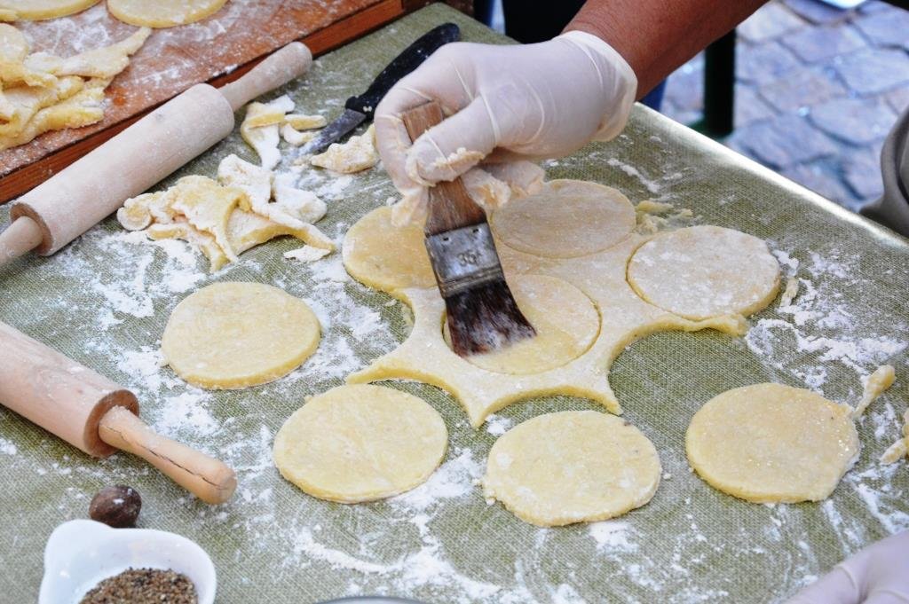 Ritagliare dei dischi di circa 8 cm di diametro, al centro dei quali si porrà una piccola quantità di ripieno.