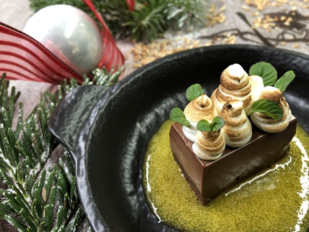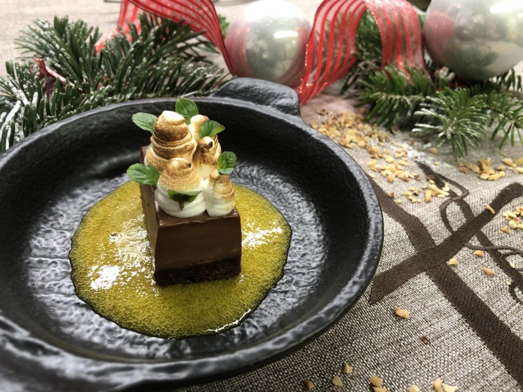 Si può gustare il Dolce Natale, lingotto al cioccolato e coulis di cachi presso il ristorante Hosteria Toblino a Sarche di Madruzzo nel periodo invernale