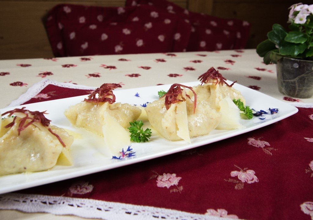 Cuocere in acqua salata. Nel frattempo in una padella sciogliere il Botìro di Primiero di malga, versarvi e saltare i fagottini.