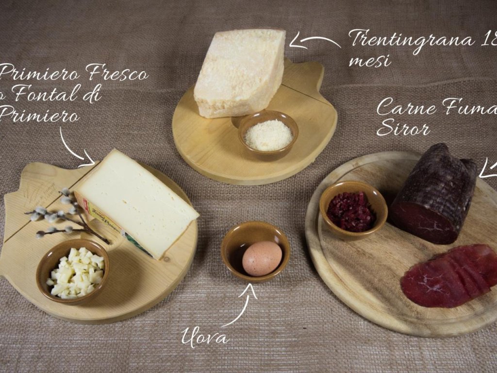 Tagliare e cubetti piccolissimi il formaggio Primiero Fresco e 2/3 della carne fumada, mescolando tutto l’insieme.