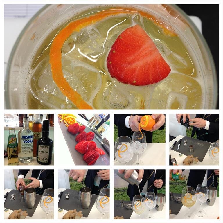 Allungare a piacimento con il Ginger Ale e chiudere la preparazione con la frutta predisposta per la guarnizione.