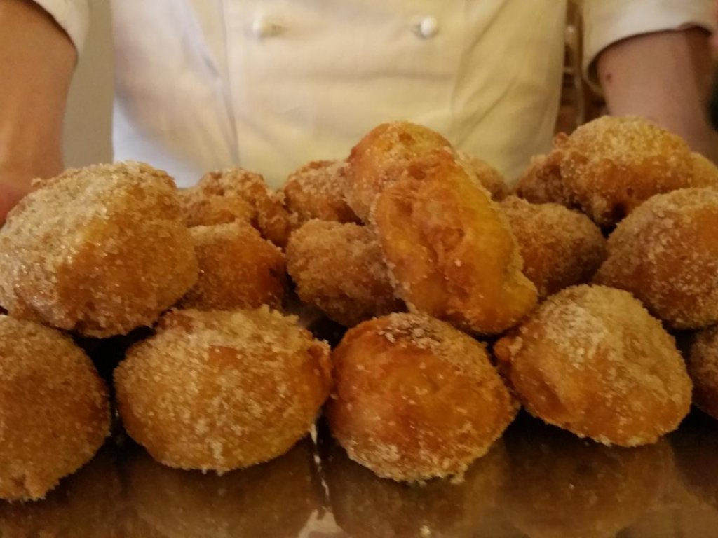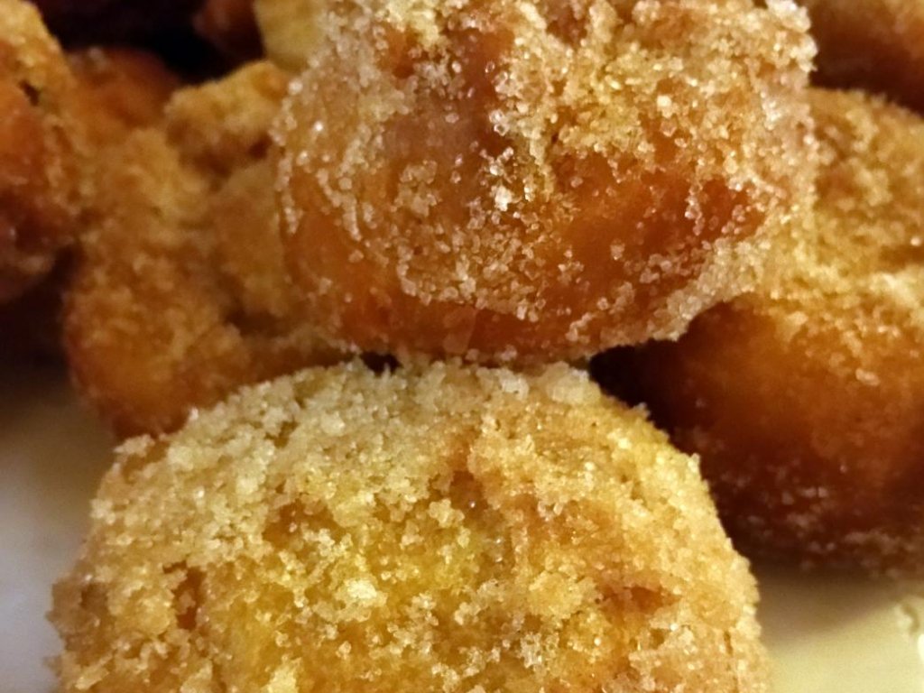 Friggere il tutto in abbondante olio, formando delle palline con l'aiuto di due cucchiai (procedimento per fare le quenelles) oppure con un cucchiaio da gelato. Spolverare con zucchero semolato ancora calde e servire.