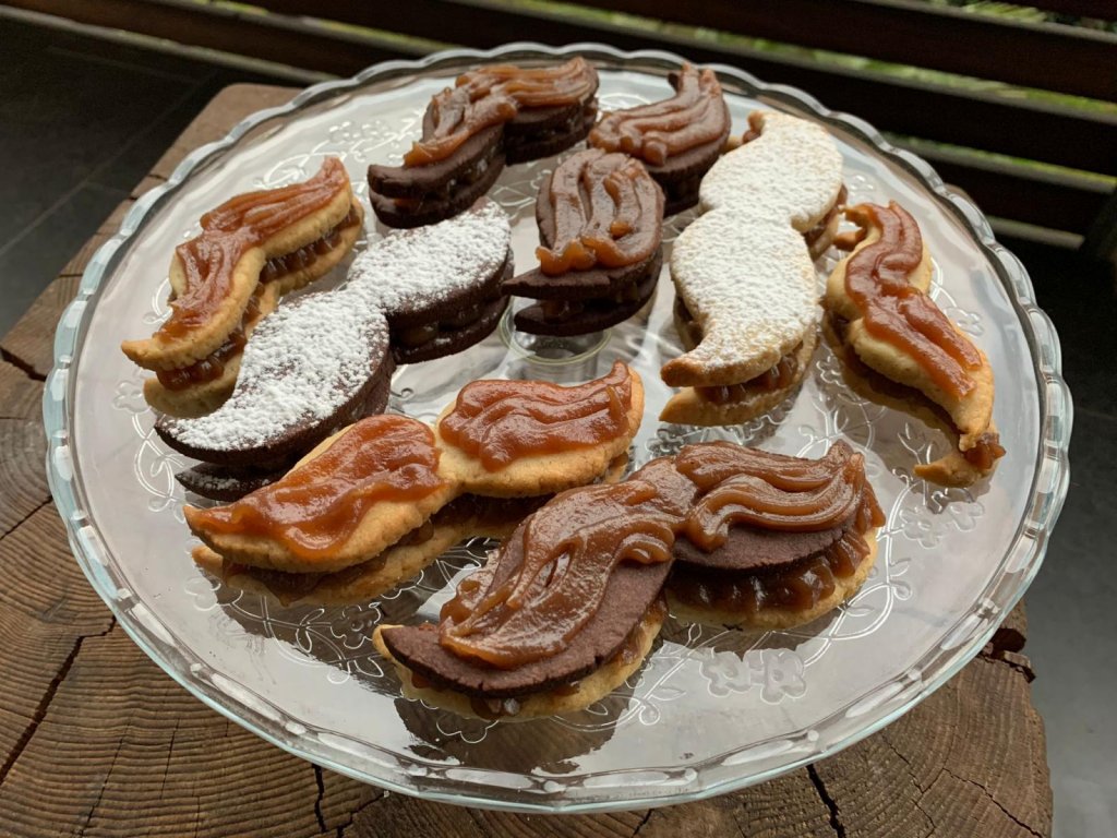 - Togliere la pasta frolla del frigorifero, stenderla e coppare con uno stampino a forma di baffi oppure ritagliare la pasta frolla utilizzando delle sagome da voi realizzati sul cartoncino.
