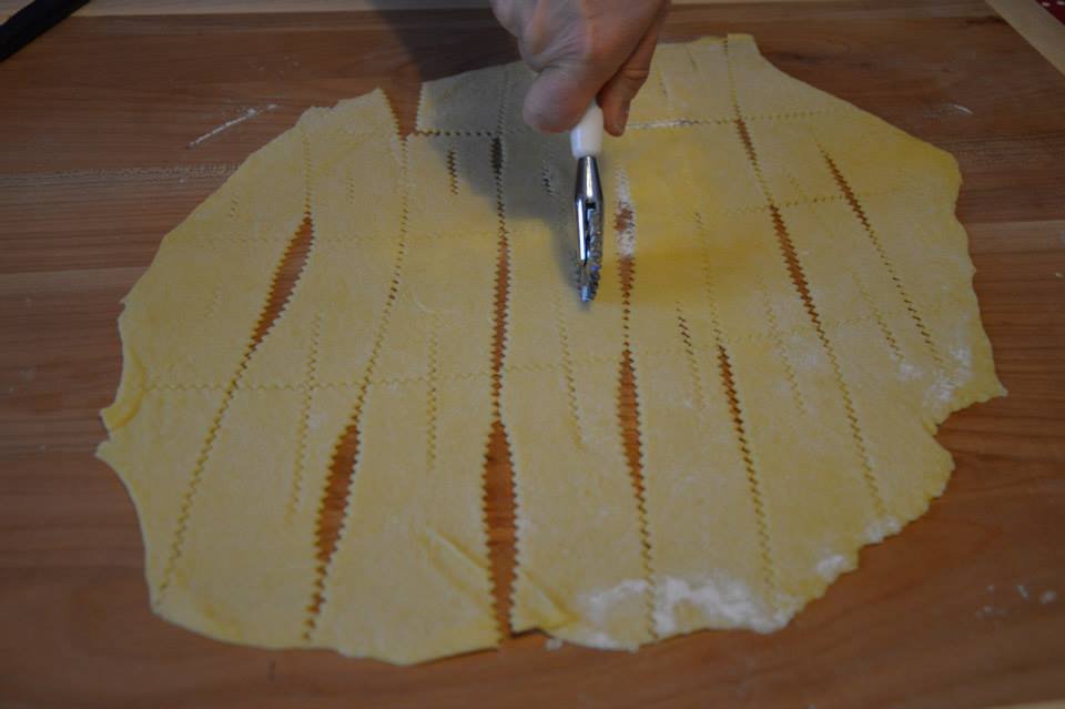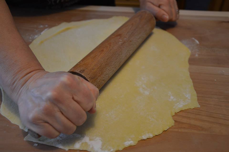 Dopo aver infarinato l'impasto stendetelo, lo spessore della pasta deve essere di circa 2 mm