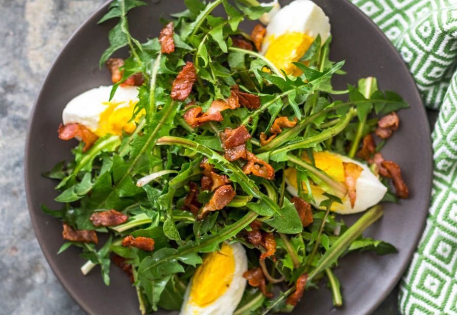 Insalata di tarassaco, pancetta e uova