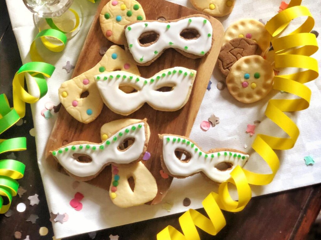 - Far raffreddare le mascherine e decorarle con la ghiaccia reale, la pasta di zucchero oppure dei confetti colorati.