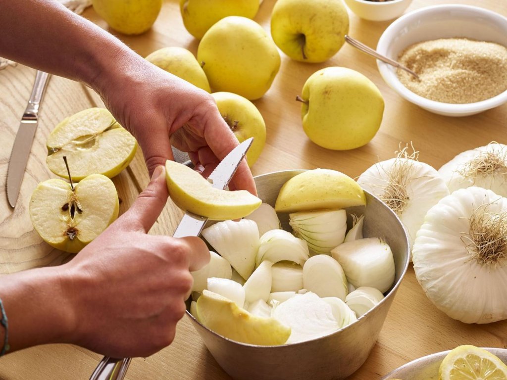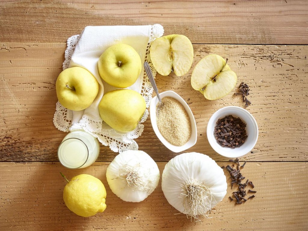 In una pentola capiente mettere la metà mela tagliata finemente, metà mela grattugiata, lo zucchero, il succo del limone e i chiodi di garofano. Far cuocere il tutto a fuoco basso finché la salsa prende consistenza (potete fare la classica “prova del piattino”, ossia mettendo un po’ di composto su un piattino e poi lasciarlo raffreddare: se non scivola via il composto è pronto!)
