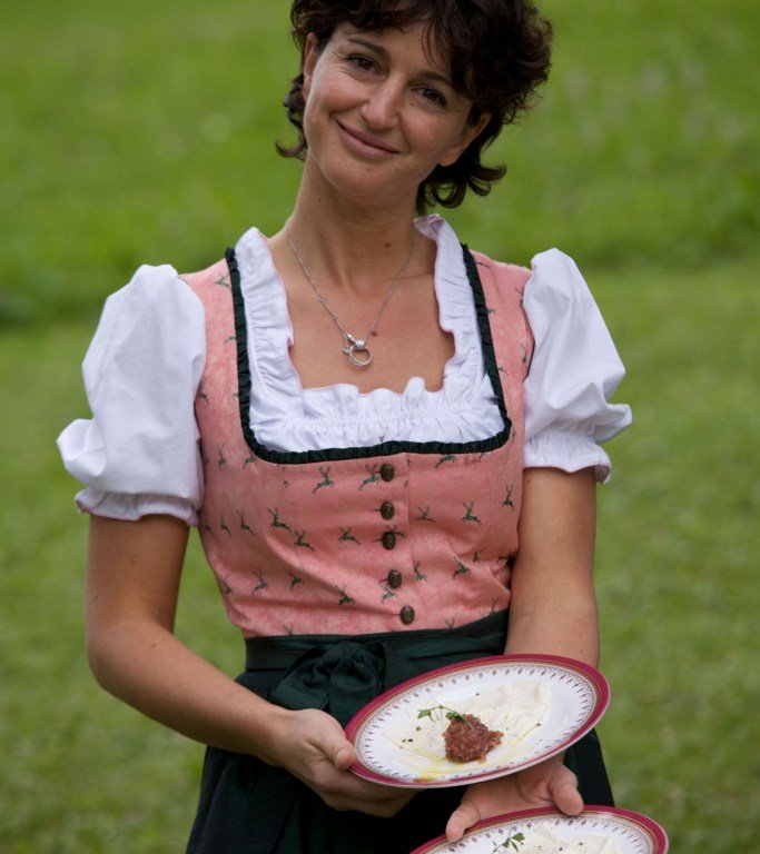Disporre sul piatto le sfoglie di “Toséla” in cerchio nel centro appoggiare la chenelle di carne salada cospargere il tutto con olio extravergine e sale pepe a piacere.