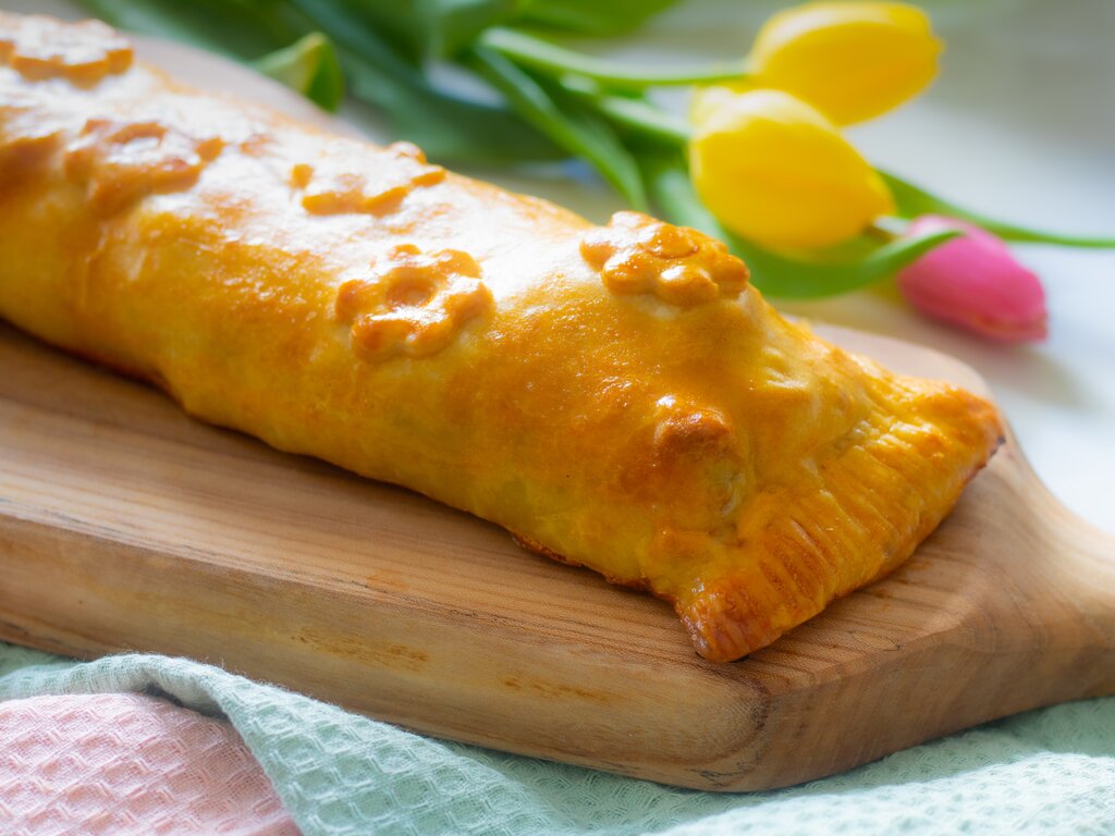- Adagiate lo strudel delicatamente su una teglia rivestita con carta forno. Spennellate tutta la superficie con l’uovo sbattuto.