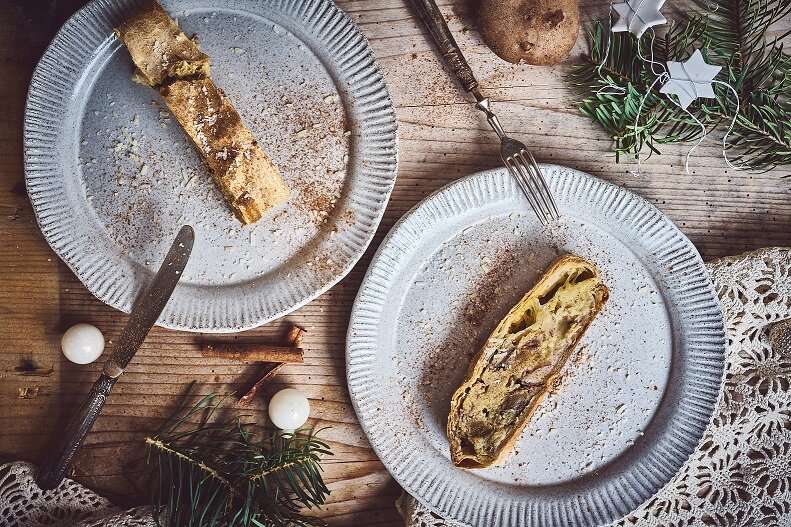Strudelino di Natale con funghi porcini e patate al profumo di cannella