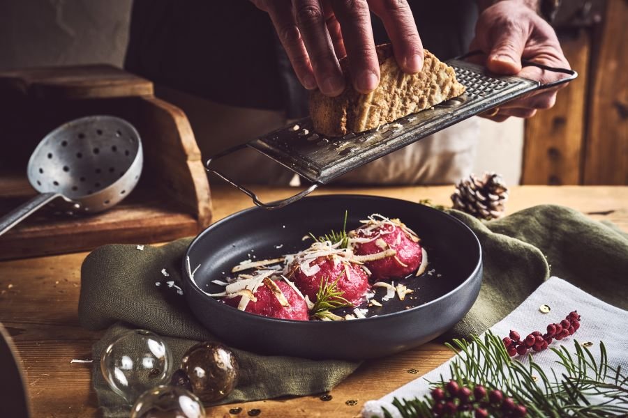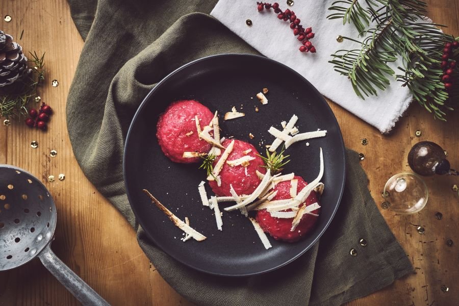 Tallari di Natale con rape rosse, Casolèt e ricotta affumicata