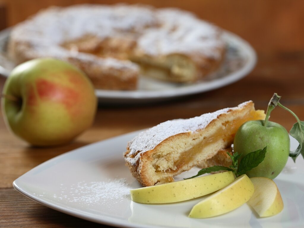 Dopodichè stendi un terzo della pasta, adagiala in una tortiera imburrata e infarinata e versaci il composto di mele. Ricopri con la parte rimanente, spennella con il tuorlo sbattuto, bucherella in superficie e cuoci in forno preriscaldato a 180° per 45-50 minuti circa.