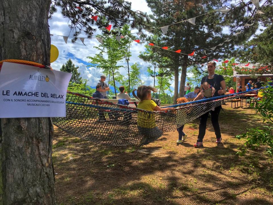 Ogni tanto sul percorso si incontrano delle curiose casette che si aprono con una chiave magica. Cosa si nasconde là dentro? E fra gli alberi, guardando il cielo, si scorgono strane figure, si potrà passare e si dovrà prima risolvere un enigma? E questa mela che rotola rotola rotola dove arriverà? Tanti giochi sul percorso terranno impegnati grandi e piccini, perché l’arrivo sarà un traguardo da conquistare.